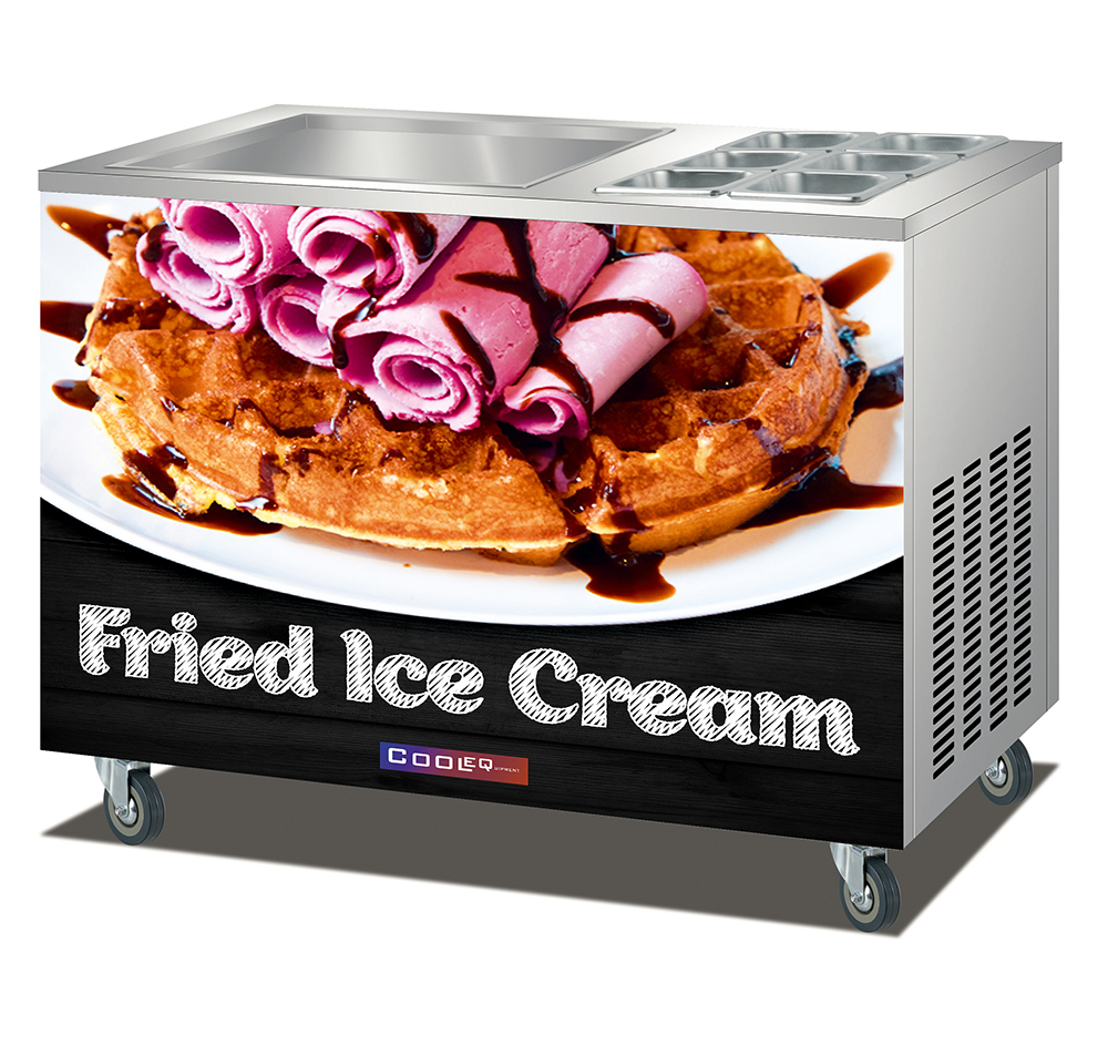 Фризер для жареного мороженого Cooleq IF-48GN – профессиональное морозильное оборудование для приготовления интересного лакомства. На рабочей поверхности формируется блин из молочной смеси, в которую добавляют разнообразный топпинг, после заморозки формируются роллы.