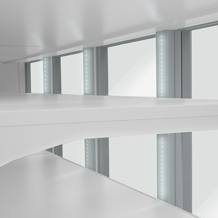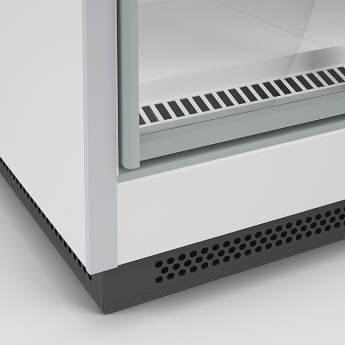 Представленная модель имеет ряд отличий и особенностей:- разница температур между внешней средой и внутренним пространством витрин зачастую приводит к образованию тонкой ледяной корки на дверцах, что уменьшает обзорную функцию: система Anti-frost позволяет уравновесить эту разницу при помощи сухого подогрева и обдува поверхности;
