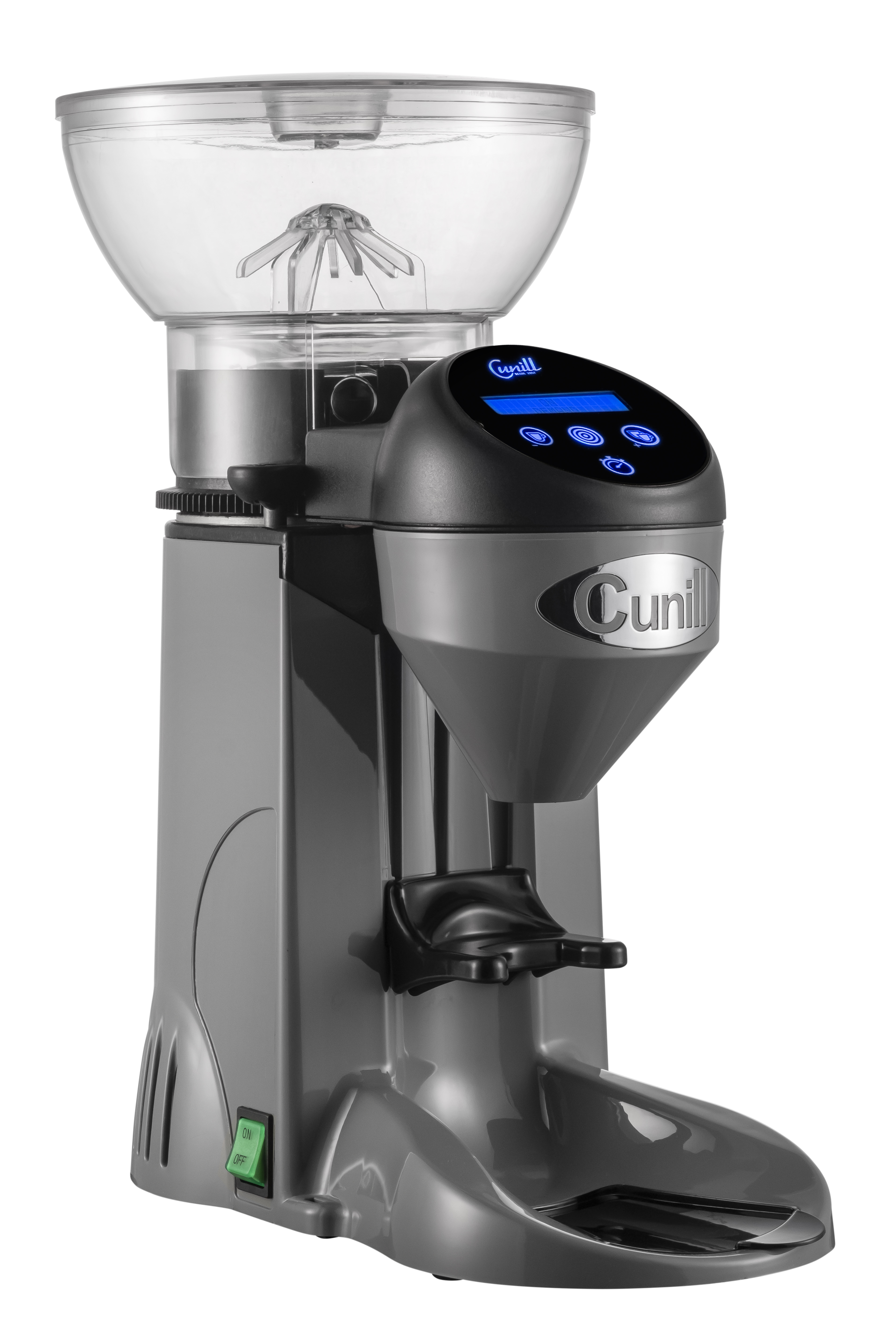 Кофемолка Cunill Tranquilo Tron Grey отлично подойдёт для заведений питания большой проходимости. В час перемалывает с исключительным качеством 10кг свежемолотого кофе. Модель оснащена удобным прогрессивным управлением — сенсорной мультиязыковой панелью. В конструкции предусмотрен держатель для холдера. Корпус выполнен из высокопрочного пластика, ёмкость для зерен — из небьющегося прозрачного материала, материал ножей — закалённая сталь. Работает с низким уровнем шума — 77дБ.Среди особенностей модели:
