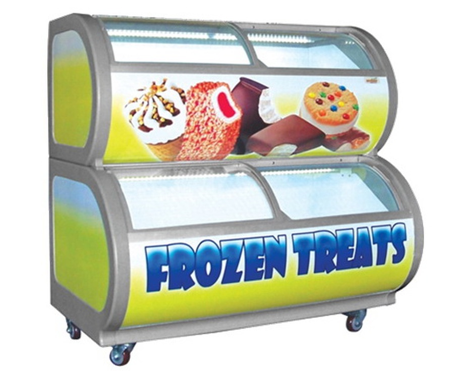 Морозильный ларь Lotos WD 500 SDT — вместительная 2-ярусная модель в оригинальном дизайне. Станет эффективнейшим решением для успешных продаж мороженого в кафе, магазинах. Каждый ярус оборудован закаленными раздвижными стеклами выгнутой формы. Рамка литая из высокопрочного пластика. Регулировка температур посредством термостата. Внедрена LED-подсветка. Встроенный замок с ключом. Ларь оснащен 4-мя колесными опорами со стопорами. Как опция доступно брендирование.