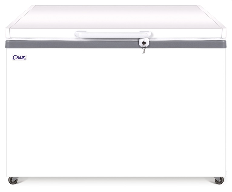 Внимание! На фото изображена аналогичная модель из оцинкованного металла. Если вам не нужна крышка из нержавеющей стали, обратите внимание на эту модель: Морозильный ларь Снеж МЛК-350 серый.