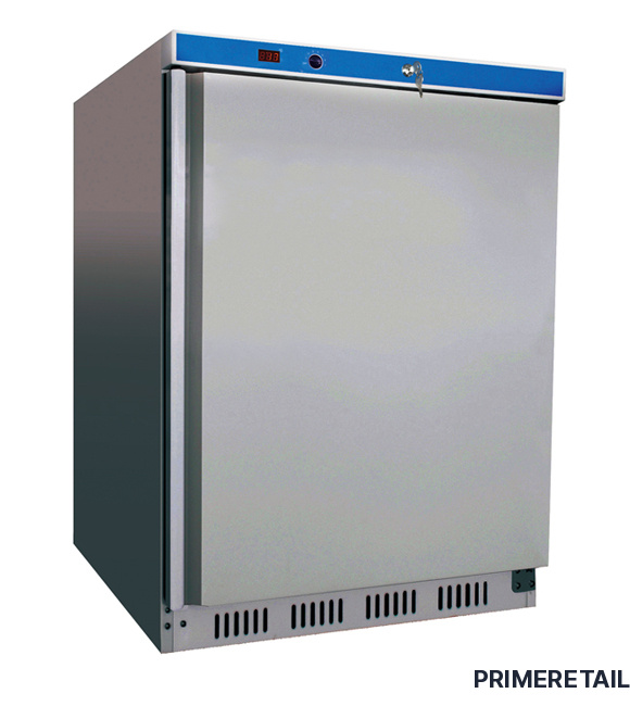 Морозильный шкаф Koreco HF200SS замораживает, хранит продукты, полуфабрикаты, мороженое. Охлаждение осуществляется встроенными в полки камеры пассивными пластиковыми испарителями. Дверь модели с замком, предусмотрена функция доводчика двери. Поверхности конструкции скругленные. На ножках предусмотрена пластиковая пятка.