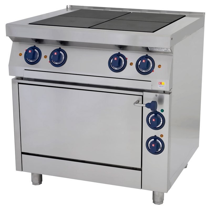 Электрическая напольная плита 4-конфорочная Kovinastroj ES-T47/1K предназначена для приготовления горячих блюд в кафе, ресторанах и местах общественного питания. Модель оснащена духовым шкафом с конвекцией и таймером, 4-мя квадратными, высокими конфорками (300х300 мм). Корпус – нержавеющая сталь. Панель управления – электромеханическая, 3-х уровневый переключатель мощности. В комплект плиты входит одна хромированная решетка и противень для духового шкафа. Мощность каждой конфорки составляет 2,5 кВт.