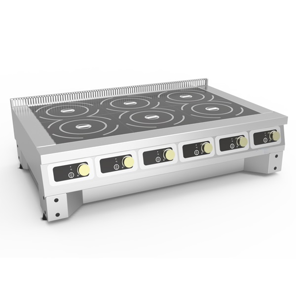 Плита индукционная Dominator ПЭИ-6(700) D актуальна для предприятий питания, где требуется одновременно готовить разные блюда. Имеет 6 плоских конфорок размером 310х290 мм. Общая мощность конфорок составляет 21 кВт, мощность одной — 3,5 кВт. 10 уровней мощности + два режима приготовления по мощности/заданной температуре позволяют готовить самые разнообразные блюда при оптимальном режиме. Плоская рабочая зона упрощает передвижение посуды по поверхности плиты. Данная модель отличается сочетанием высокой производительности, энергоэффективности и безопасности работы поваров.