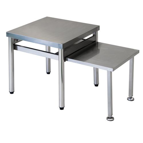 Подставка ПДЭ-01, производства Атеси, предназначена для установки электромеханического оборудования, таких как, например, мясорубки, овощерезки, на кухнях различных предприятий общественного питания. Подставка размером 500х500х500мм имеет выдвижную полку, что значительно сокращает рабочее пространство на кухне. Размеры выдвижной полки рассчитаны под гастроёмкости и кастрюли объемом 30 - 40л. Общие габариты подставки с задвинутой внутренней полкой, очень компактны, но в тоже время позволяют разместить на ней полезное рабочее оборудование, ведь в наши дни ассортимент вспомогательного оборудования для предприятий общественного питания очень велик и необходим.Характеристики