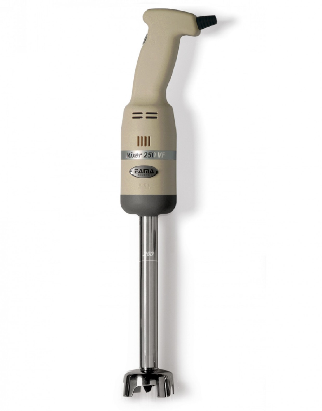 Ручной миксер Fama Mixer 250 VF+ насадка 250 мм – профессиональный аппарат для помола твердых пищевых продуктов и приготовления салатов, соусов, овощного пюре. Незаменим на профессиональной кухне, отличается малым весом и большой мощностью, что сокращает время готовки и облегчает работу персонала. Особенности модели Mixer 250 VF:- миксер погружного типа;