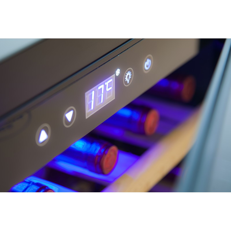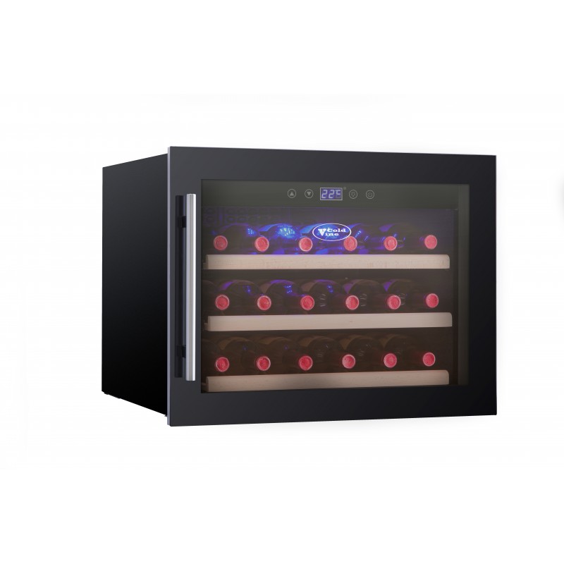Винный шкаф Cold vine C18-KBB1 — однозонная компактная модель, исполненная в стильном дизайне. Корпус шкафа из крашеной стали (черный), дверь — тонированный стеклопакет с защитой от ультрафиолета, рама черная под стеклом, стильная накладная ручка. Предназначен для хранения различных видов вин. Все заданные параметры отображаются на ЖК-экране.